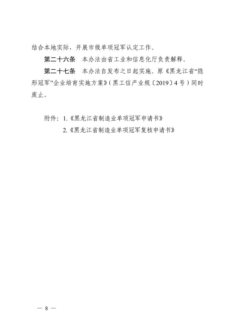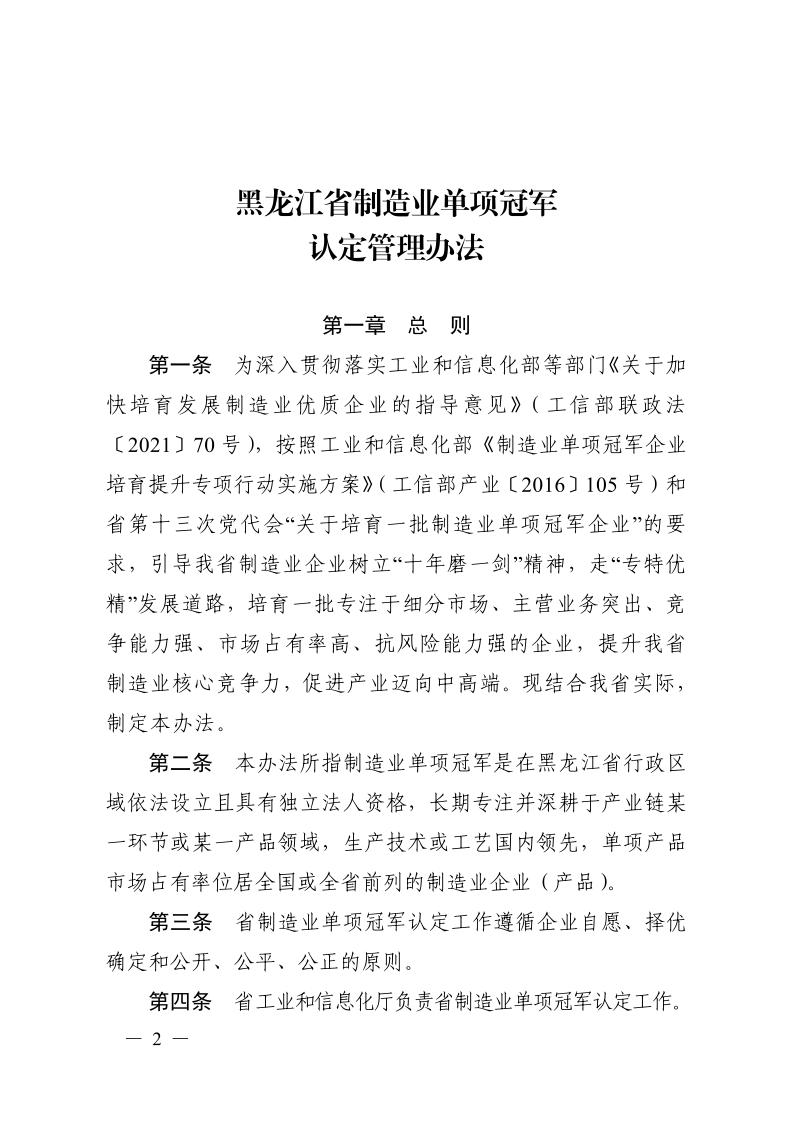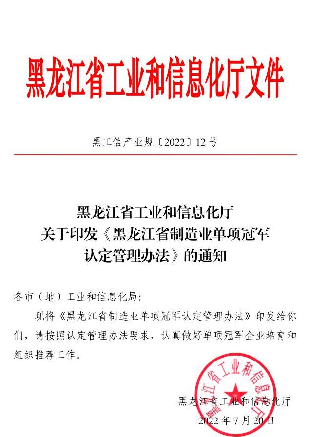 關(guān)于公布2022年度黑龍江省制造業(yè)單項(xiàng)**企業(yè)(產(chǎn)品)名單的通知
